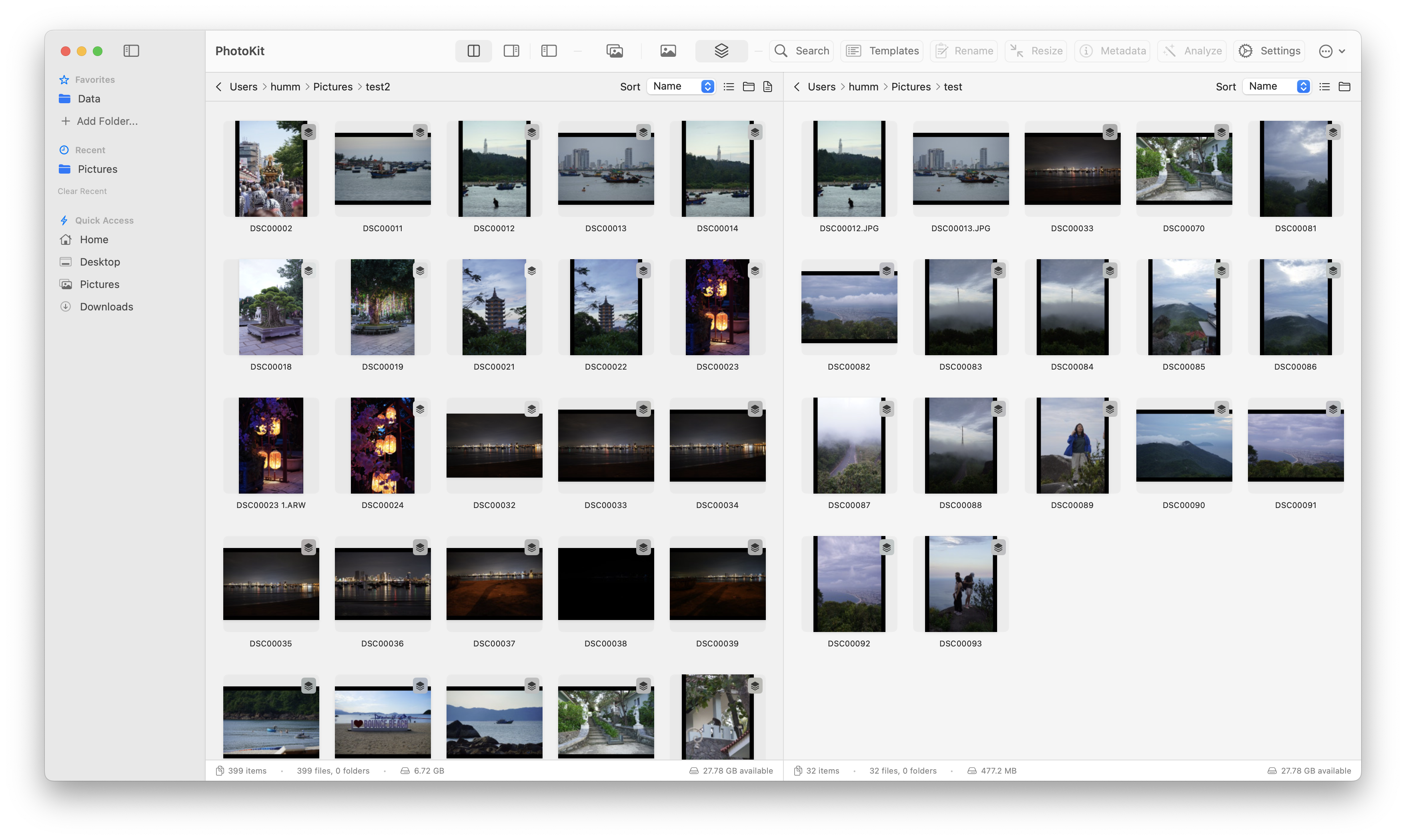 Create reusable templates for all batch operations. Save your resize presets, rename patterns, folder structures, and metadata configurations. Apply them instantly to any batch of photos with a single click.